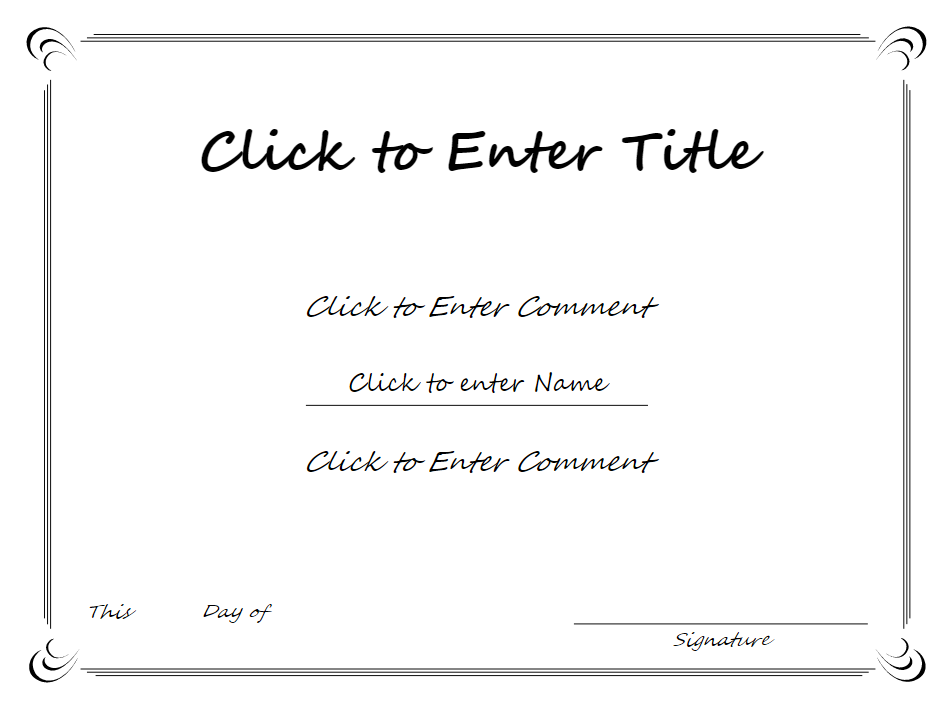 Follow the instructions on the certificate to click into the Work Area and type your information using your keyboard.