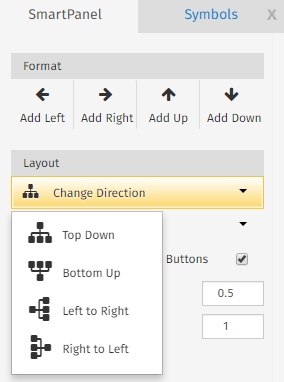 Change the layout of your entire diagram by selecting from the Change Direction drop down menu in the Layout section of the SmartPanel.