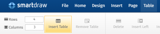 Insert a table into your visual by selecting the desired Rows and Columns, then click Insert Table.